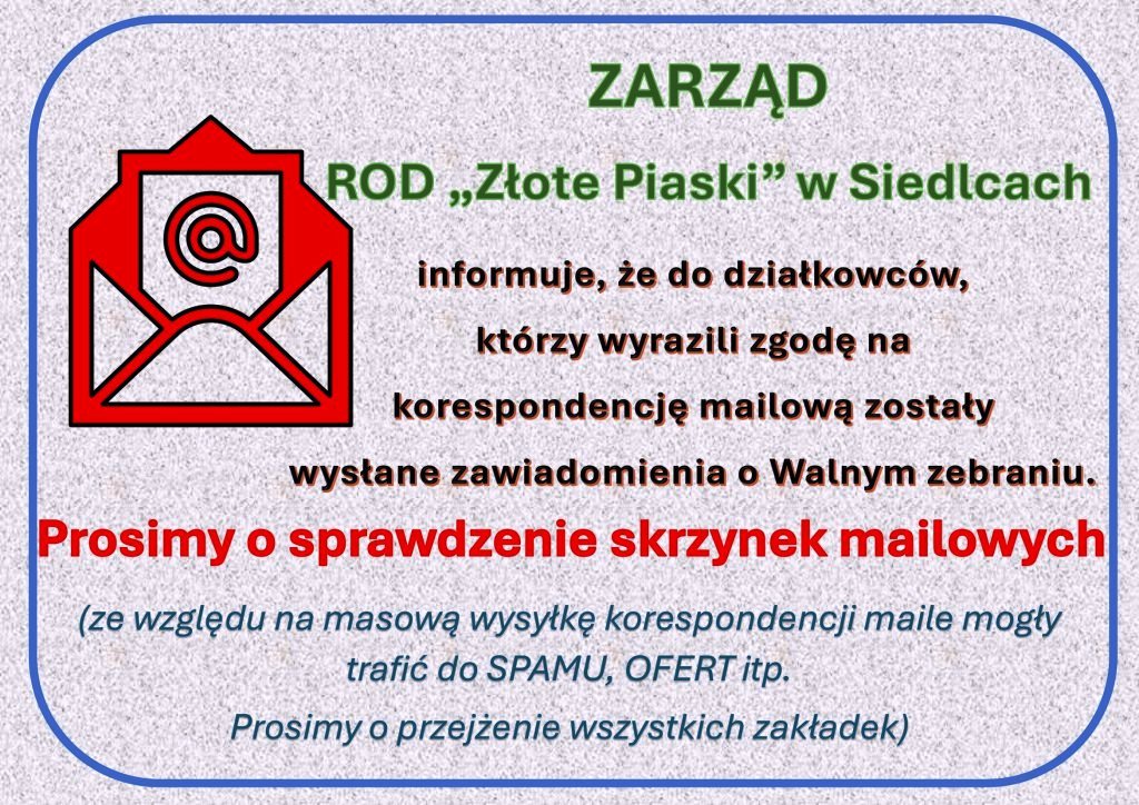 12 kwietnia 2025 roku odbyło się Walne Zebrania Sprawozdawcze członków ROD „Złote Piaski” w Siedlcach. Frekwencja była niewielka, bo wyniosła 6%, dlatego zebranie odbyło się w drugim terminie. Po odczytaniu sprawozdań nadszedł czas na ustalenie opłat ogrodowych. Wniosek o ustalenie wysokości opłat przedstawiła Pani Prezes ROD. Po krótkiej dyskusji walne uchwaliło opłaty na 2025 rok. Olbrzymim problemem są koszty wywozu nieczystości, bo w przyjętym preliminarzu stanowią one aż 53% wszystkich opłat. Niestety jak stwierdziła Pani Prezesowie sami jesteśmy temu winni, bo nie umiemy zagospodarować odpadów zielonych, których w ubiegłym roku wywieźliśmy 362 tony.